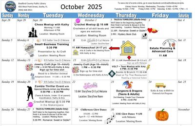 If you are looking for events to attend and activities to keep you busy, the Bradford County Public Library has what you need! Just take a look and find the event or activity that piques your interest, then mark your calendar and show up for the fun!